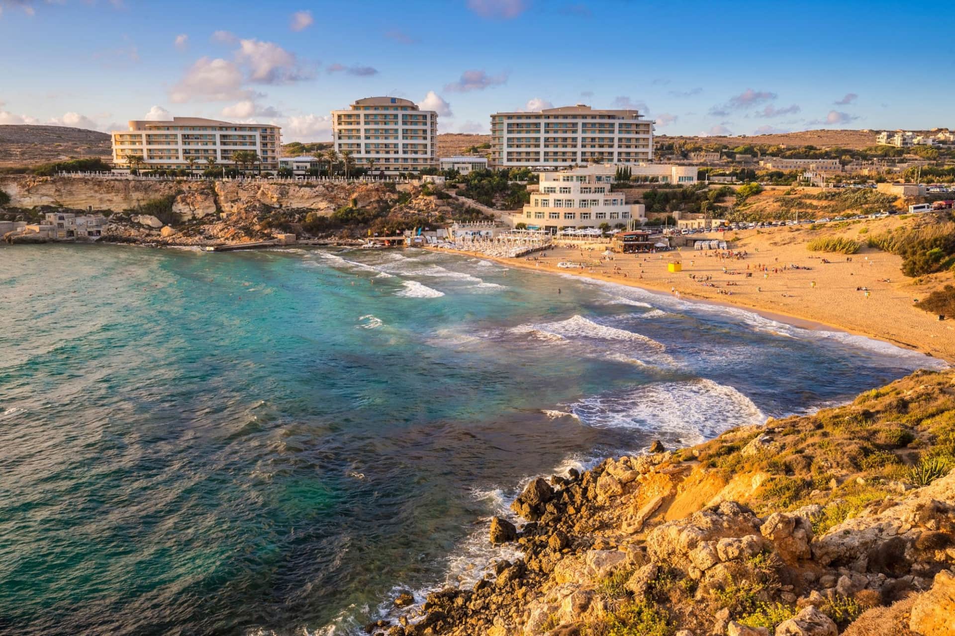 Further along the coast, Buġibba offers a more urban atmosphere with: